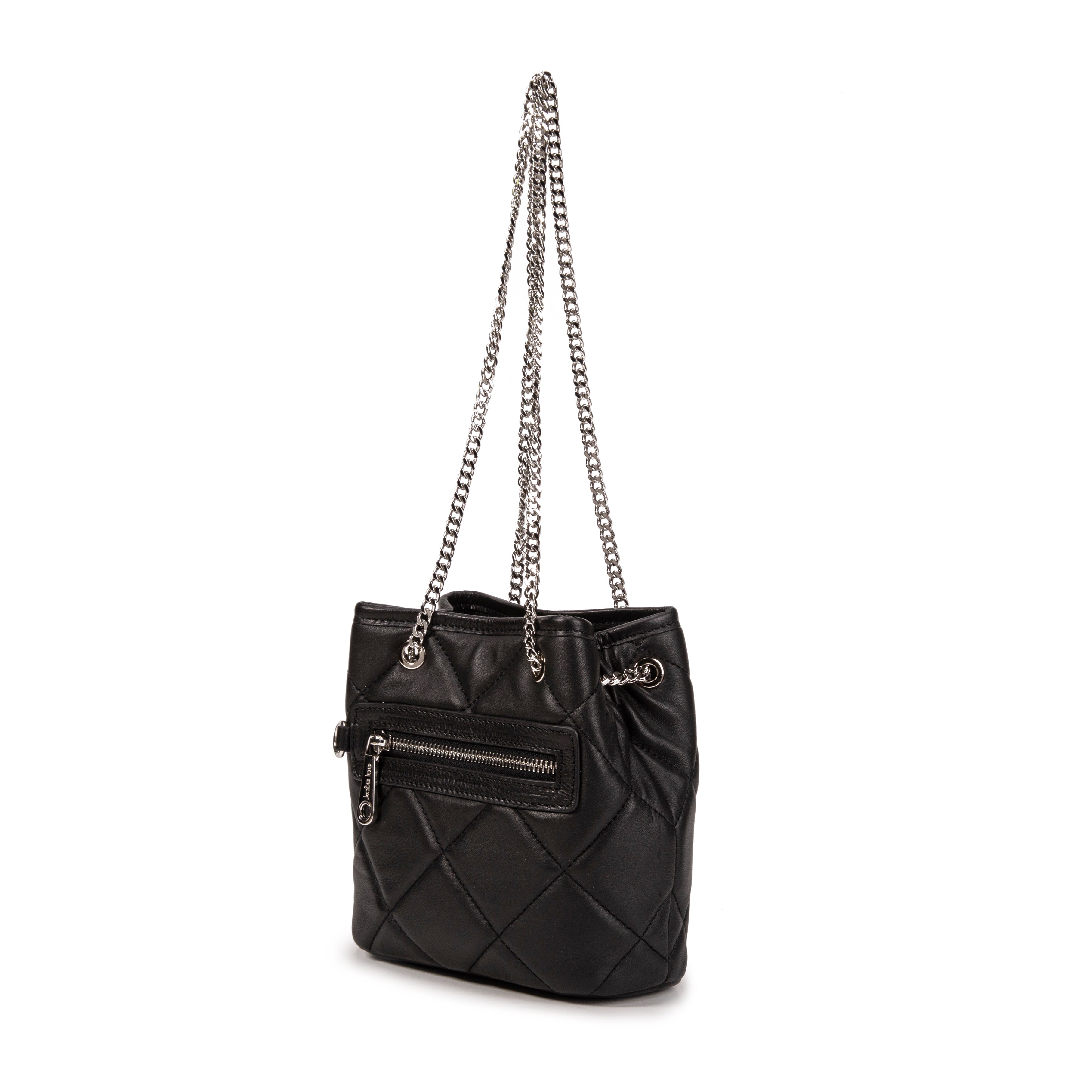 Sac seau porté épaule ou porté bandoulière cuir d'agneau matelassé